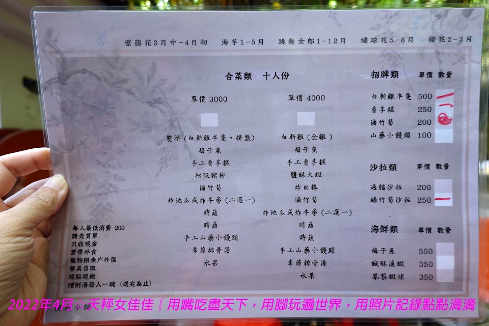 今天點了4000元的套餐,10個人吃剛剛好,還有米粉湯,地瓜湯喝到飽。吃飽飯足之後再到旁邊散步邊消化邊觀賞繡球花和海芋。