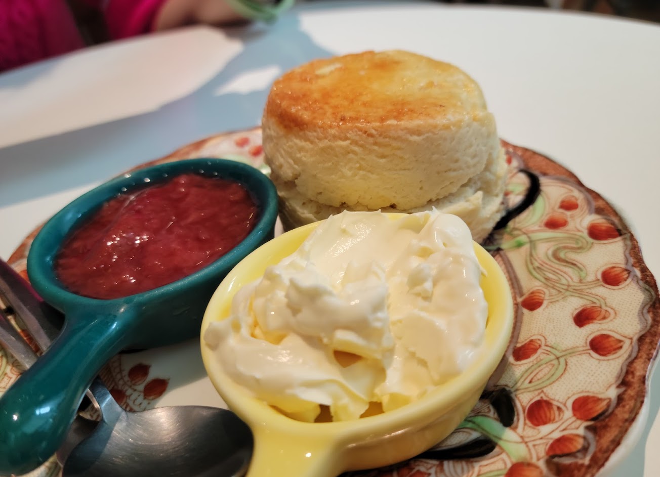司康很好吃!真的很好吃!搭配德文郡奶油跟果醬,不會太乾。