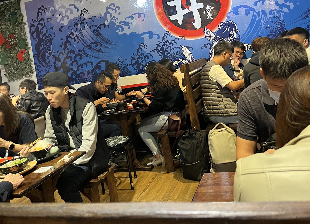 色彩繽紛的自助式餐廳,供應丼飯、壽司與其他日式特色料理。