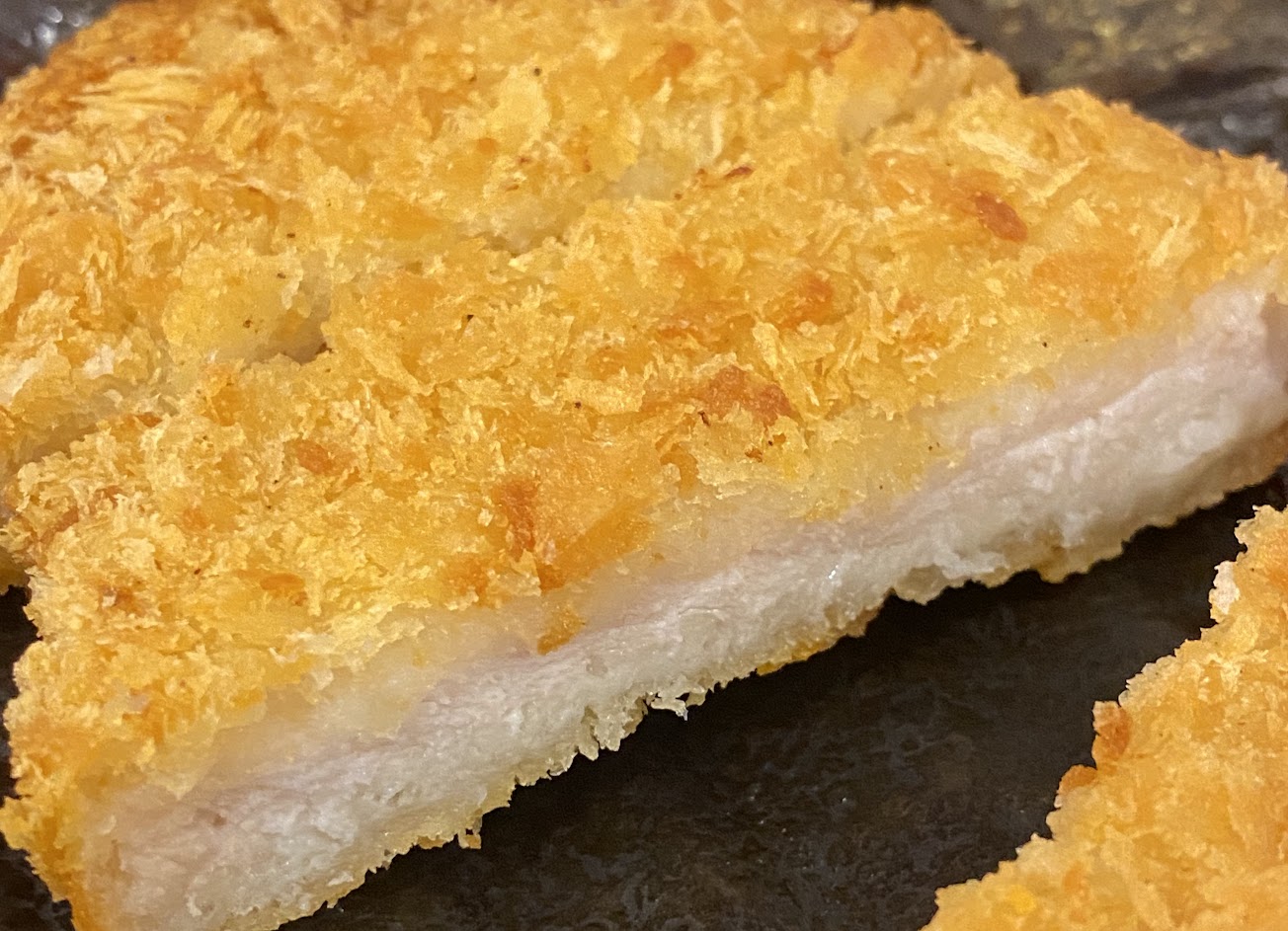 現炸豬排又香又酥,不用配醬直接吃就很好吃!