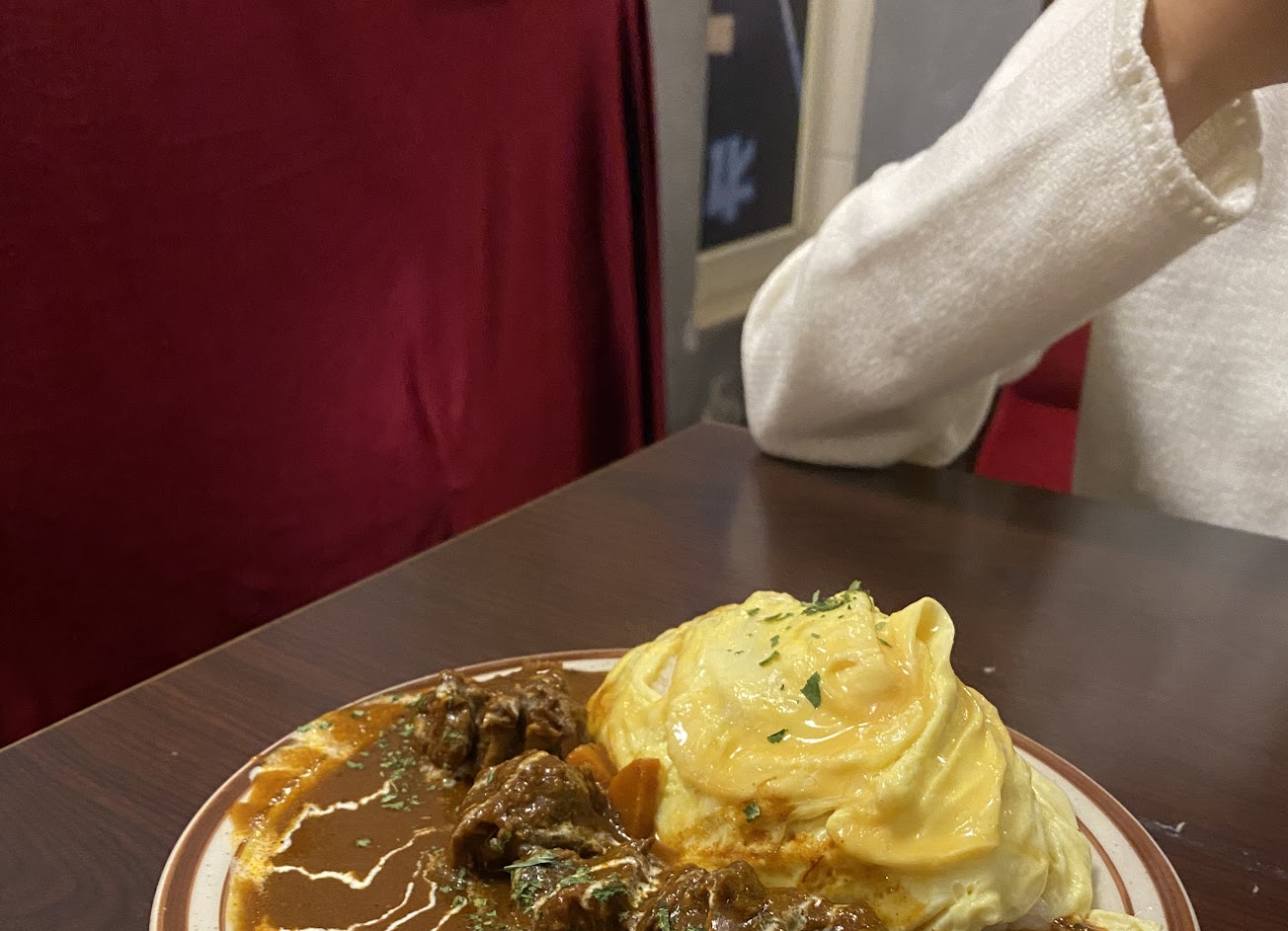 紅酒燉牛肉咖哩??+歐姆蛋? 牛肉? 有筋,還有小骨頭,要小心食用❗ 充滿韌性,不是軟糯的口感 牛香蠻明顯的,但緊接著就會被濃郁的咖哩蓋過