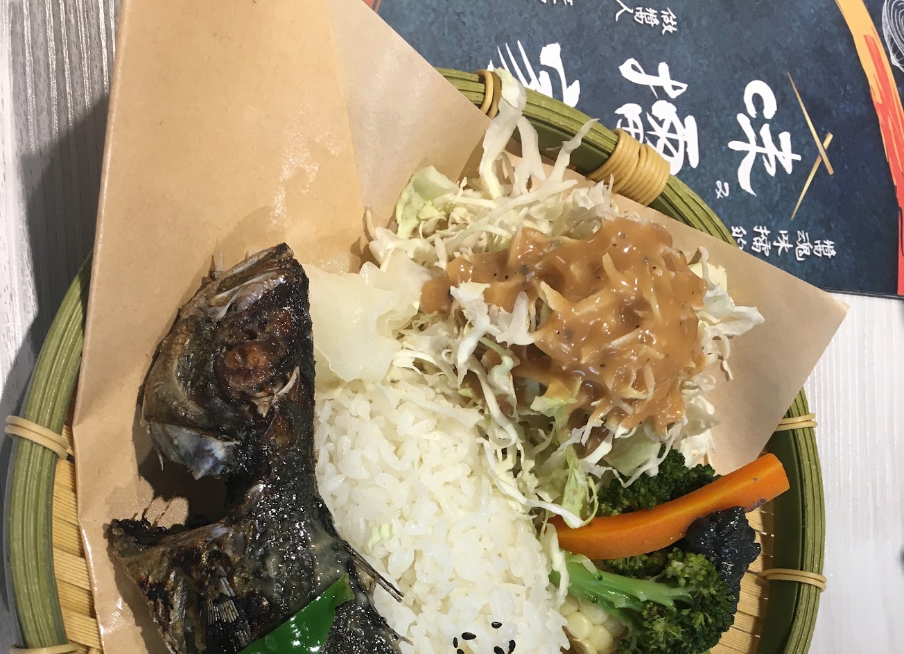 食物,多普通就不說了。配菜三樣(加上三片醃蘿蔔算四樣),一個是生菜沙拉,一個是管麵(義大利麵),一個雖不確定是什麼,但是三樣都是冷的!除了沙拉醬有味道,其他幾乎沒有味道,怎麼配飯吃…。主餐的魚味道是還可以(可以配飯),但大小還不到飯的三分之一!至於魚多薄也不贅述了,視如珍寶的配飯吃,只能吃一半…。總之這大概是我剩最多菜飯的一次了(還不是因為吃不下)(罪惡)。然後這樣還要150啊!蔥抓餅都比這個有味道TAT。