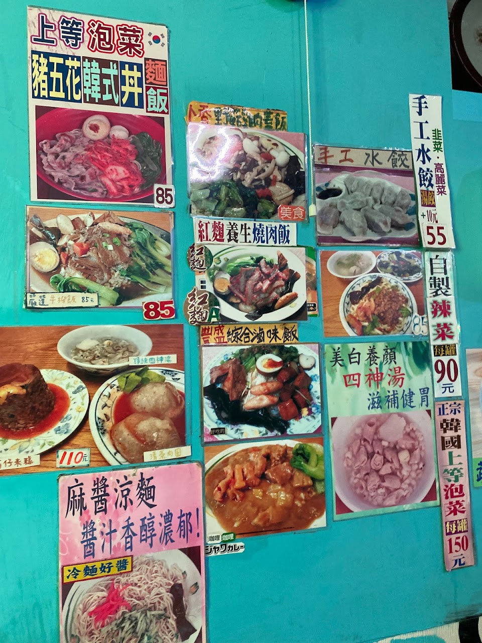 咖哩飯 四神湯 牛肉麵 炸排 水餃 韭 高 叉燒飯 青菜蛋花湯 炸排骨飯