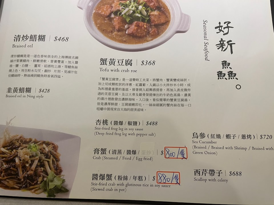 沒有以前好吃與道地了,或許是為了迎合口味?上海菜飯像是沒蛋的台式炒飯,醃篤鮮勉強可以,推薦涼菜蔥烤鯽魚,其他菜不予置評……