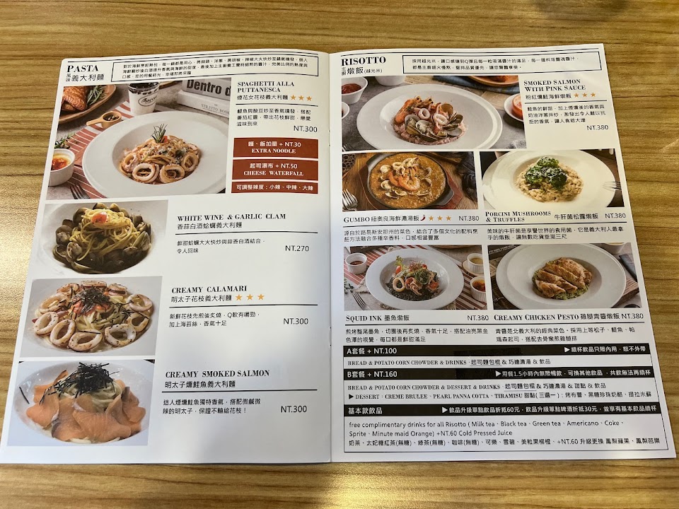 套餐有湯、麵包、沙拉、無限續杯飲料、甜點,CP值算是相當高。