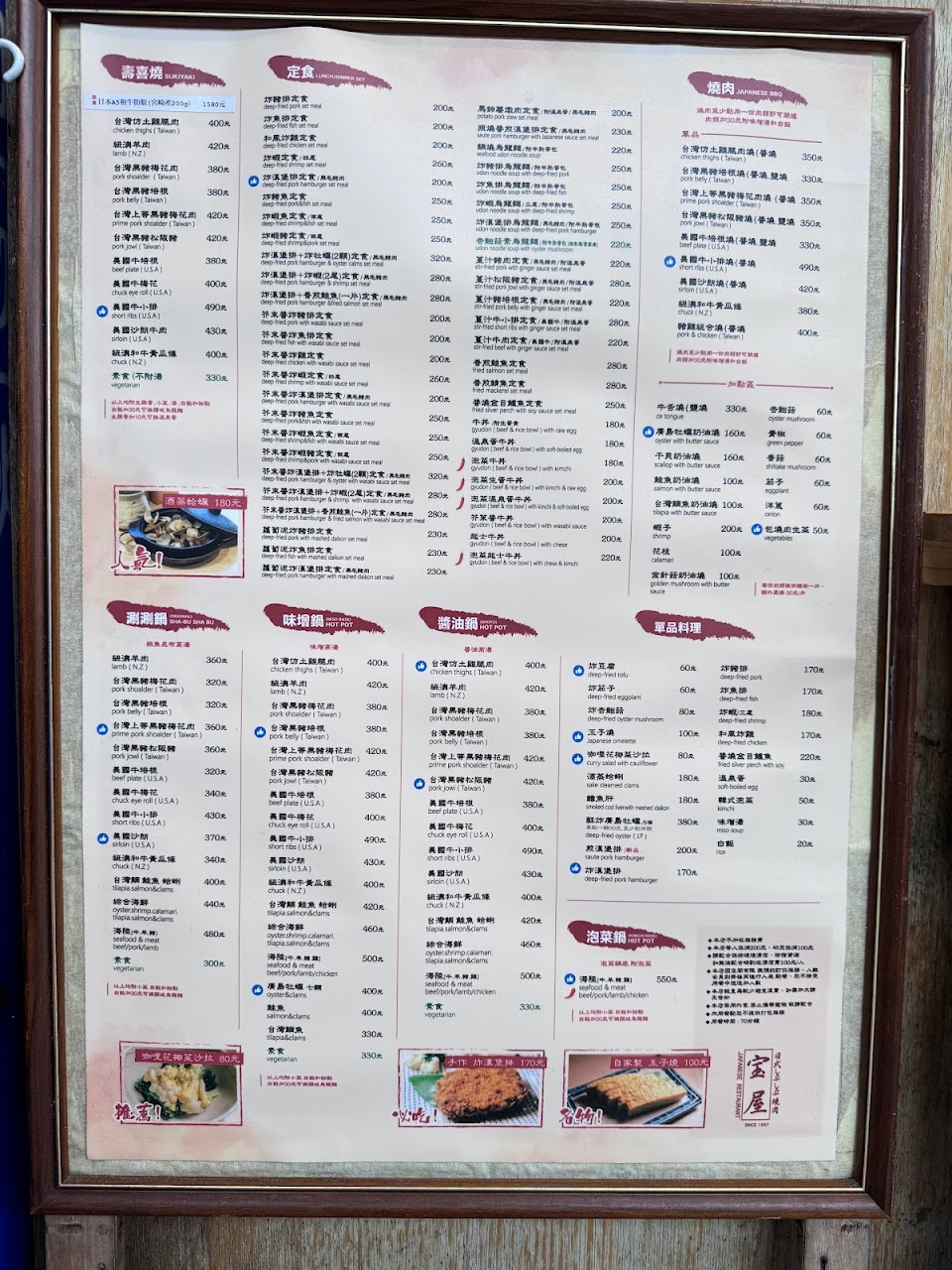 基本上就是三種料理,炸物,鍋類及燒烤。