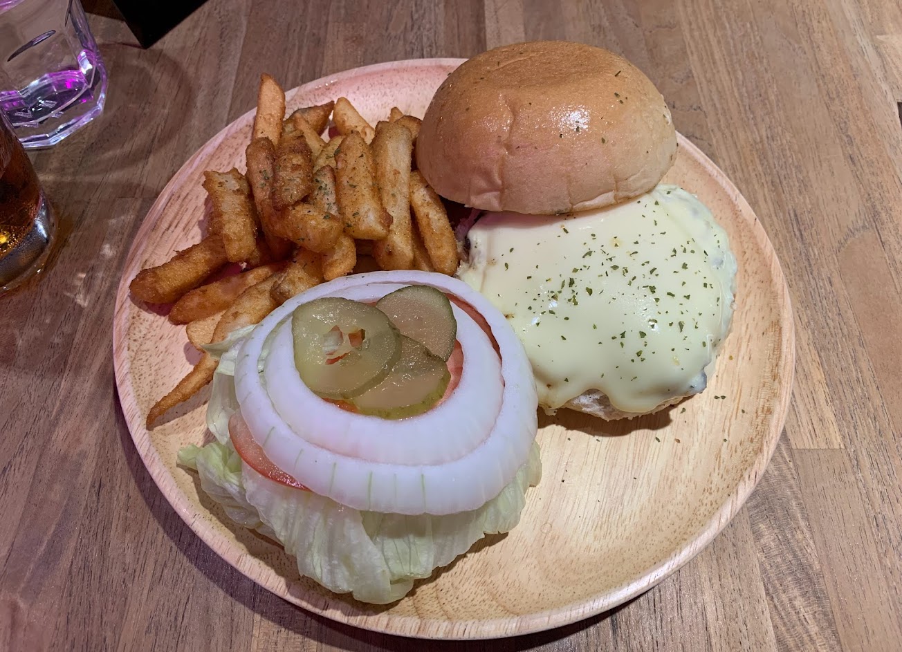 拿到的漢堡蔬菜是分開的,對挑食的朋友很友善!自己把漢堡拼起來的感覺也很療癒