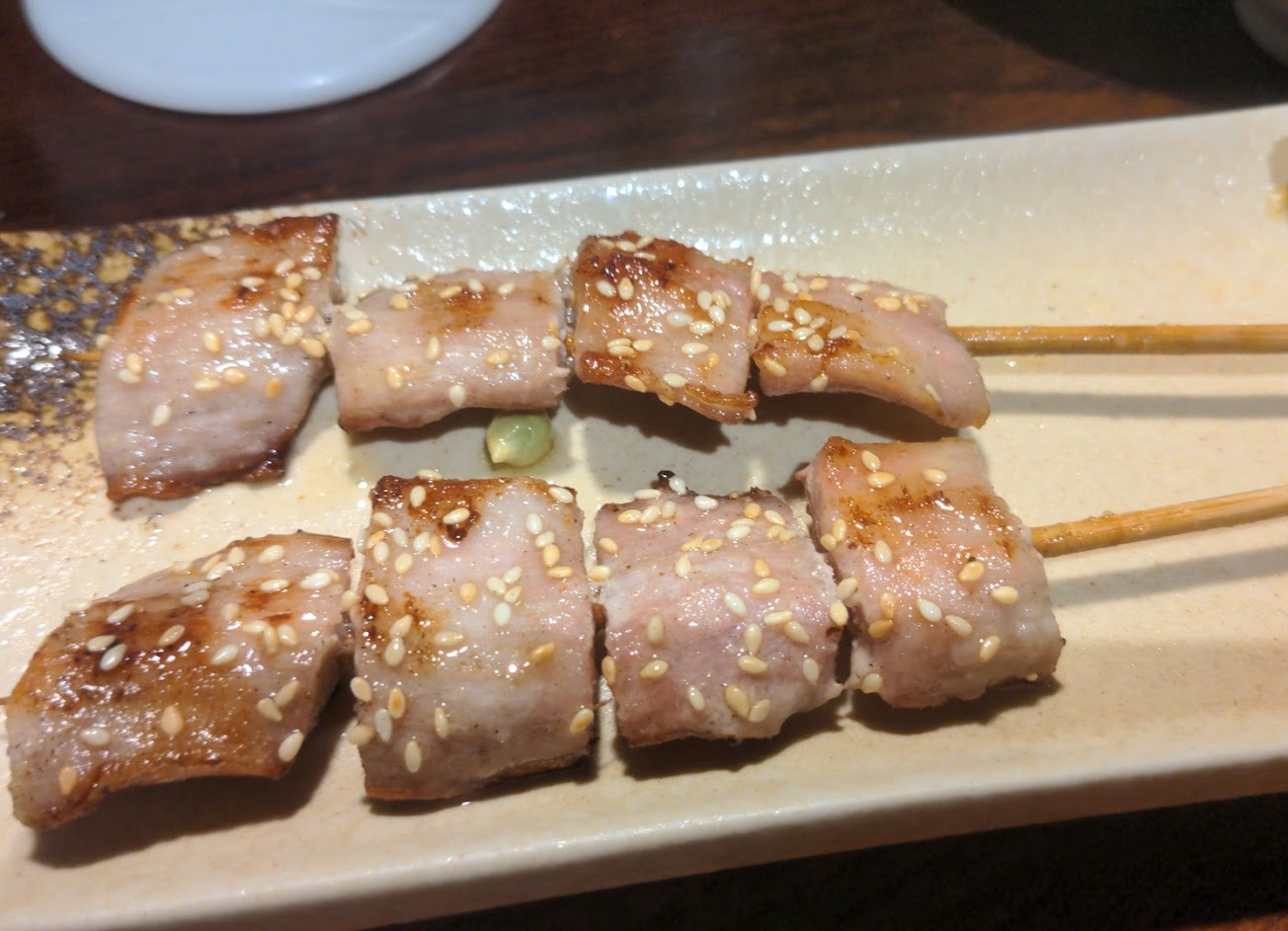 點了其他烤串的部分,沒有照片,因為很不好看,除了明太子雞腿沒有烤焦之外,很貴的橫隔膜、雞胗、豬牛肉…等等等,都是一面烤焦,吃得到苦味,而且很乾柴。