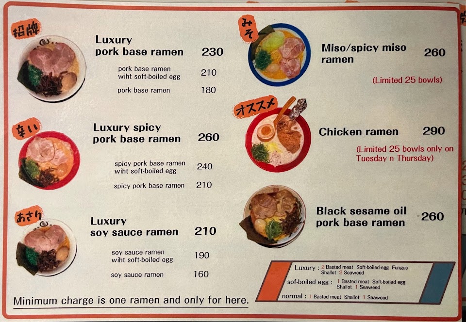 第一次去不懂流程,服務人員很親切的帶到前方說明使用點餐機。點了辛豚骨拉麵,個人覺得比起西門店,這家的湯更濃厚,推薦