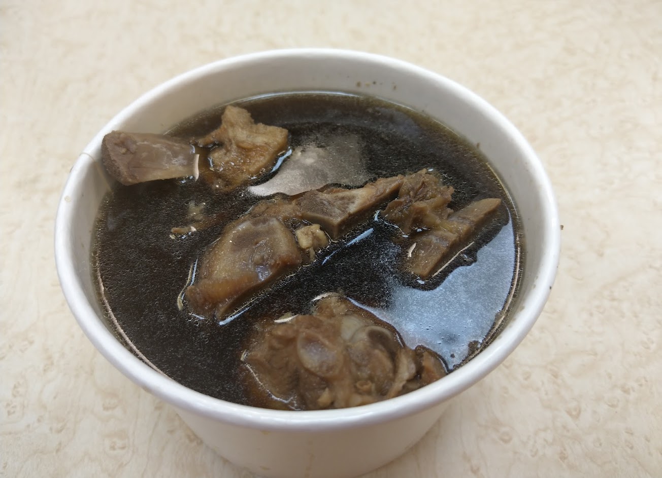 藥燉排骨湯黑清甜不死鹹,中藥膳香氣濃,排骨肉量一般。