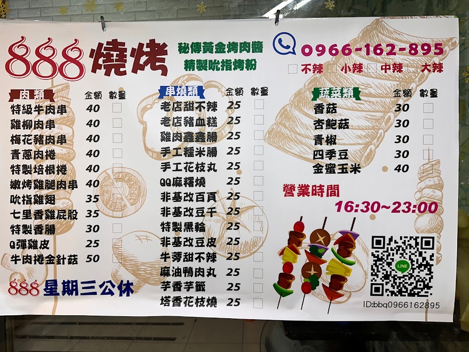 2024最新在地推薦餐廳的菜單_888燒烤的菜單、圖片