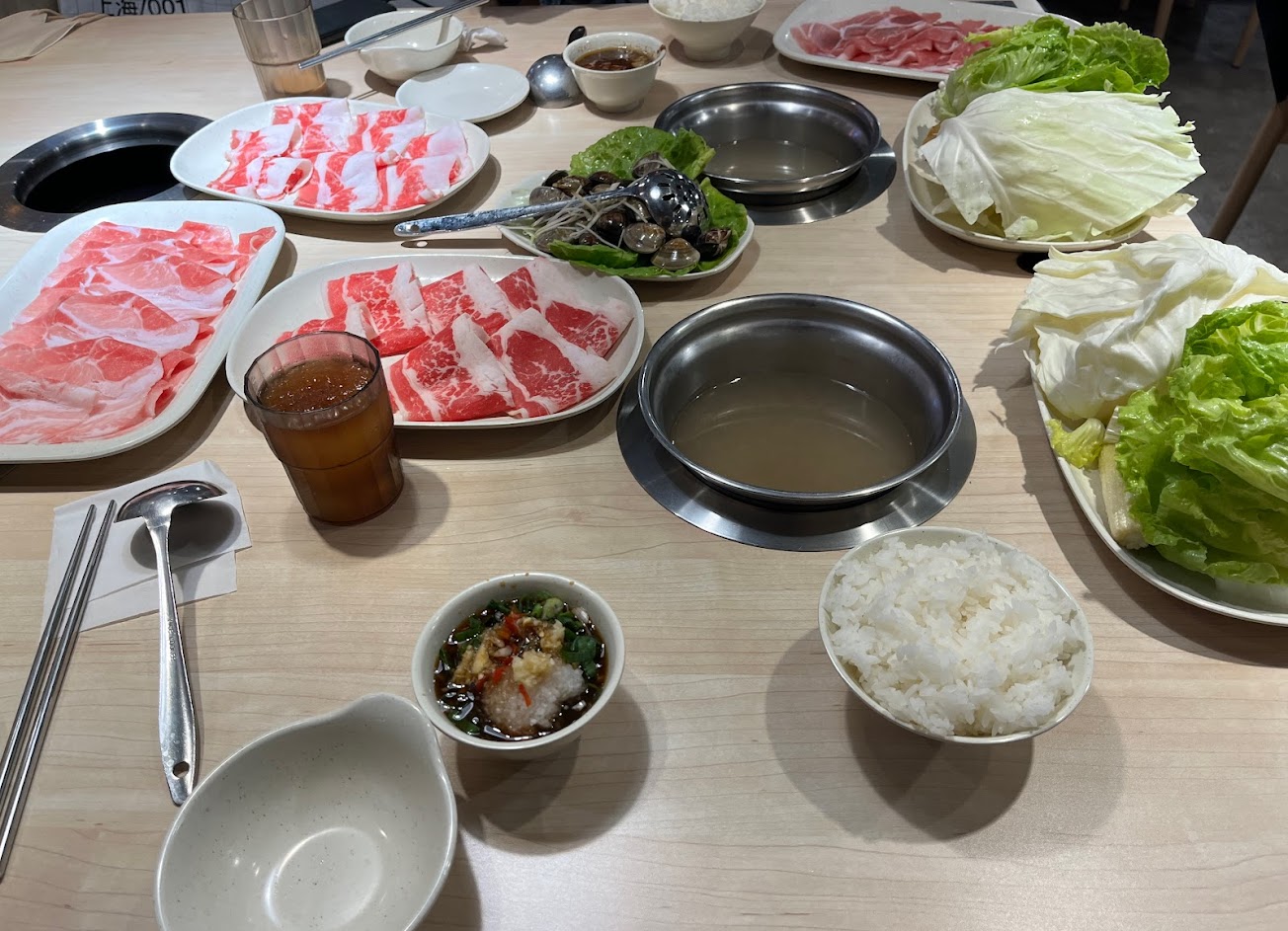 火鍋湯頭除了昆布鍋以外,其餘都需要再加錢,副食則是免費提供白飯、烏龍麵、王子麵,若想要滷肉飯、豬油拌飯也是需要加購的喔!(超推肥滋滋的滷肉飯)??