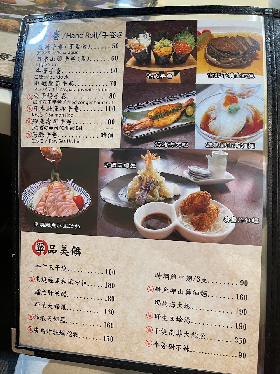 山藥手捲吃起來很清爽,鰻魚手捲的魚是表皮焦脆的很香