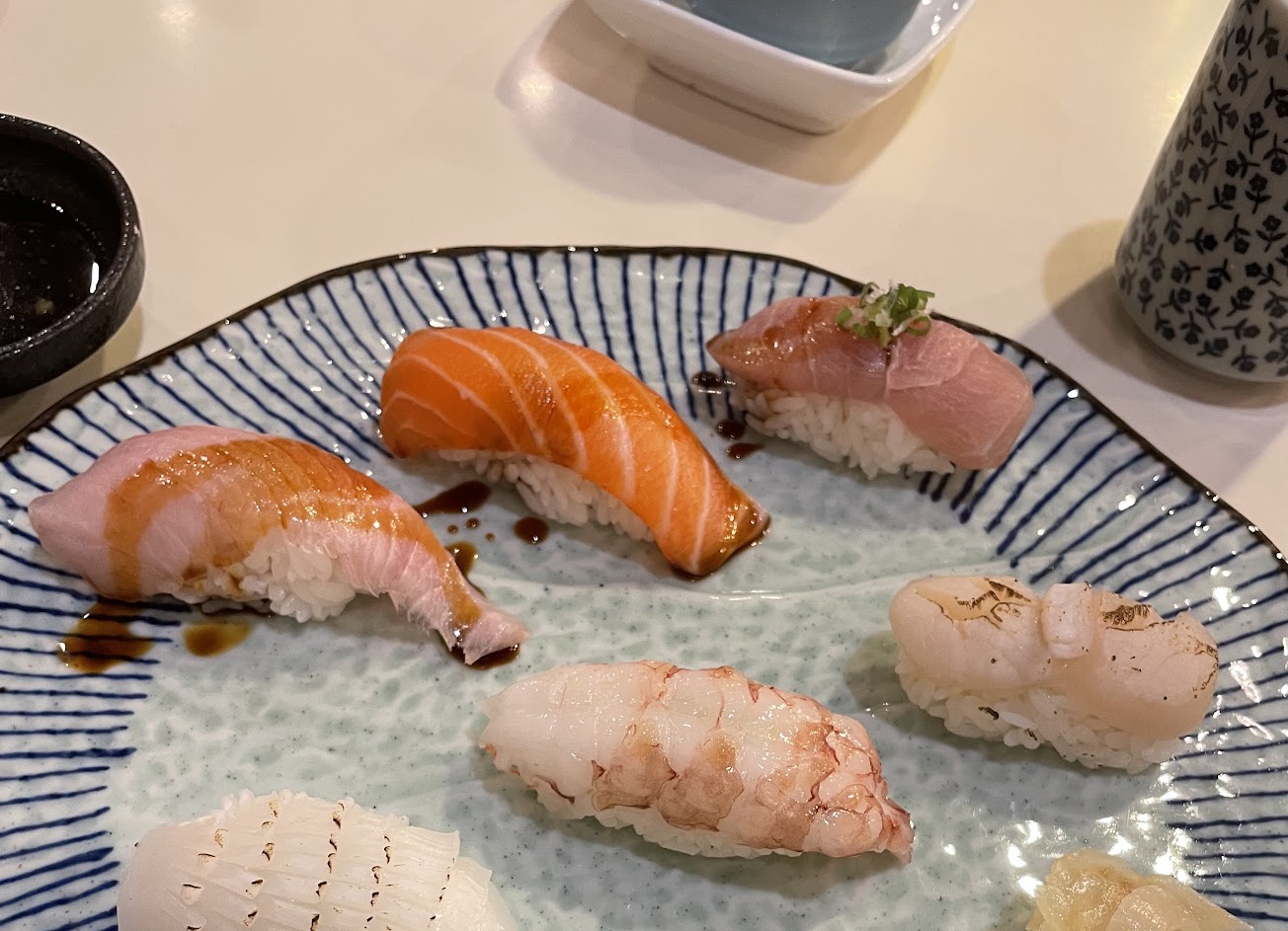 (二訪) 干貝奶油海鮮丼 令人驚艷 三色丼(炙燒比目魚)比想像中的少,ok 店員即使忙碌態度也很親切 黑板上可能有特價資訊,可以注意一下 —————— 握壽司 高水準 山藥細麵 好吃 松露干貝茶碗蒸 好吃 烤午仔魚 好吃 非常滿意