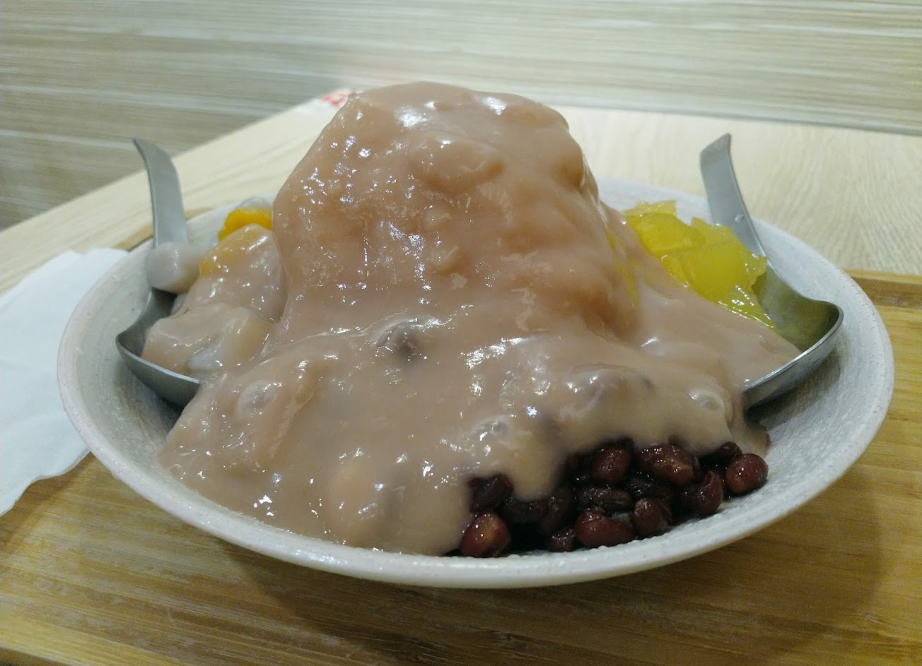 招牌芋頭冰,粉粿倒是意外的好吃,其他的芋圓、湯圓不知道是因為泡在挫冰裡太冰,變得有點硬,粉圓倒是還不錯!