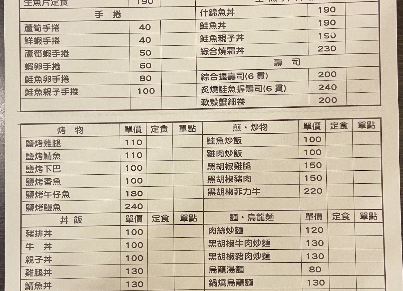 以平價日式料理為招牌,套餐可一併免費享用白飯、味噌湯、茶水,料理內容近年有作彈性調整,日式風味維持和風格式,值得稱道的平價依然親民,想來一鍋個人湯鍋也行,價格一樣平價。