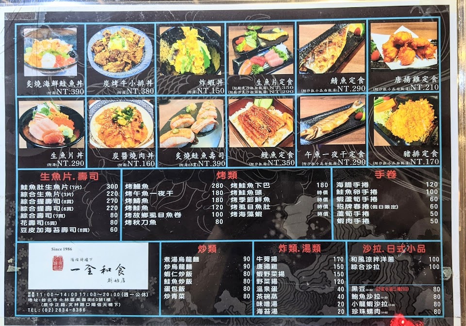 生魚片丼飯 唐揚炸雞 鰻魚定食 綜合壽司 可樂 餅 胡麻豆腐