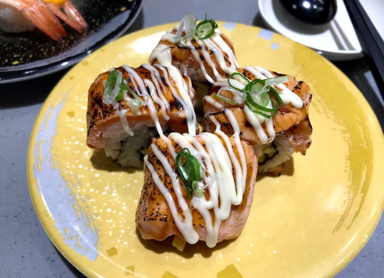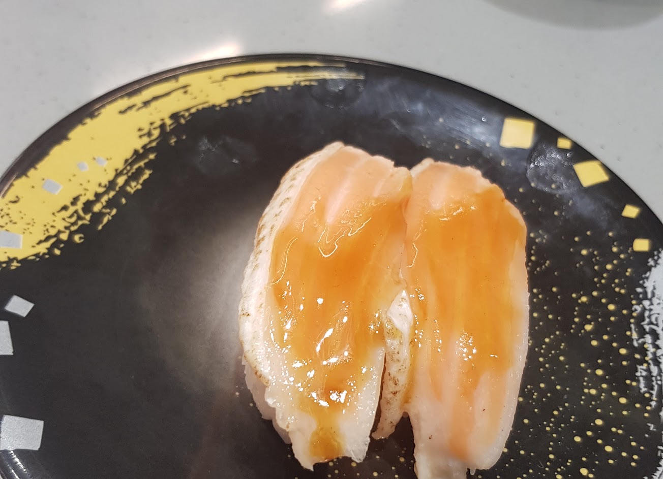 不得不說,目前所有台灣平價迴轉壽司中,用料最大方與實在的就是一條通。食材新鮮價格便宜,圖中的比目魚我忍不住點了三盤,肉是一盤比一盤厚。大推!