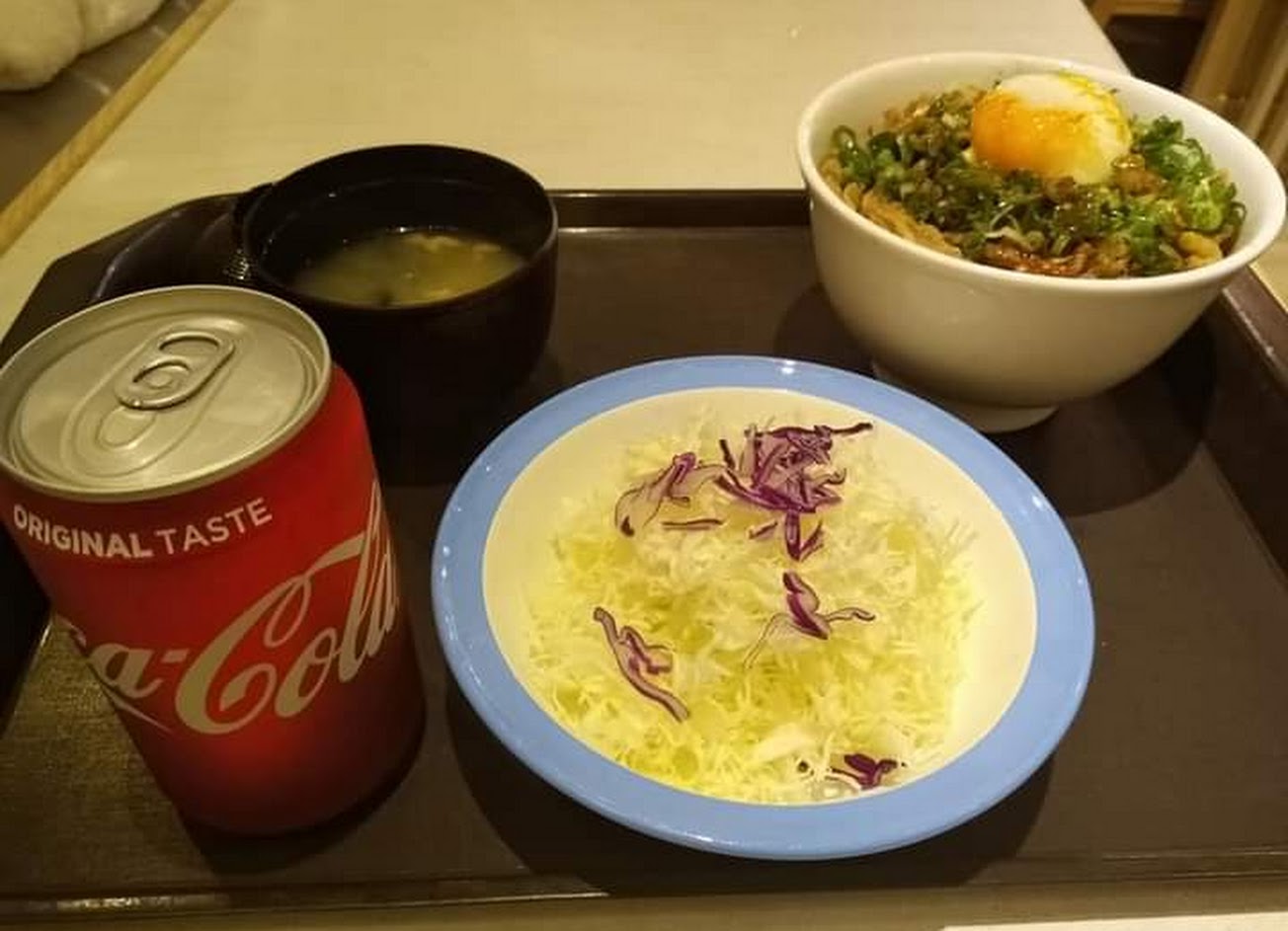 6月底外帶牛丼半小時後食用。不知道是不是因為早上9點的關係,飯整體很硬甚至帶有無法咀嚼的硬塊(還以為是骨頭);牛肉非常老而且比想像的無味,配不完整碗飯;高麗菜沙拉帶有菜腥味;味增湯…沒印象了。品質以連鎖店來說實在有點低落,感覺更像是自營日式小吃店的水平。優點:餐券機很方便。