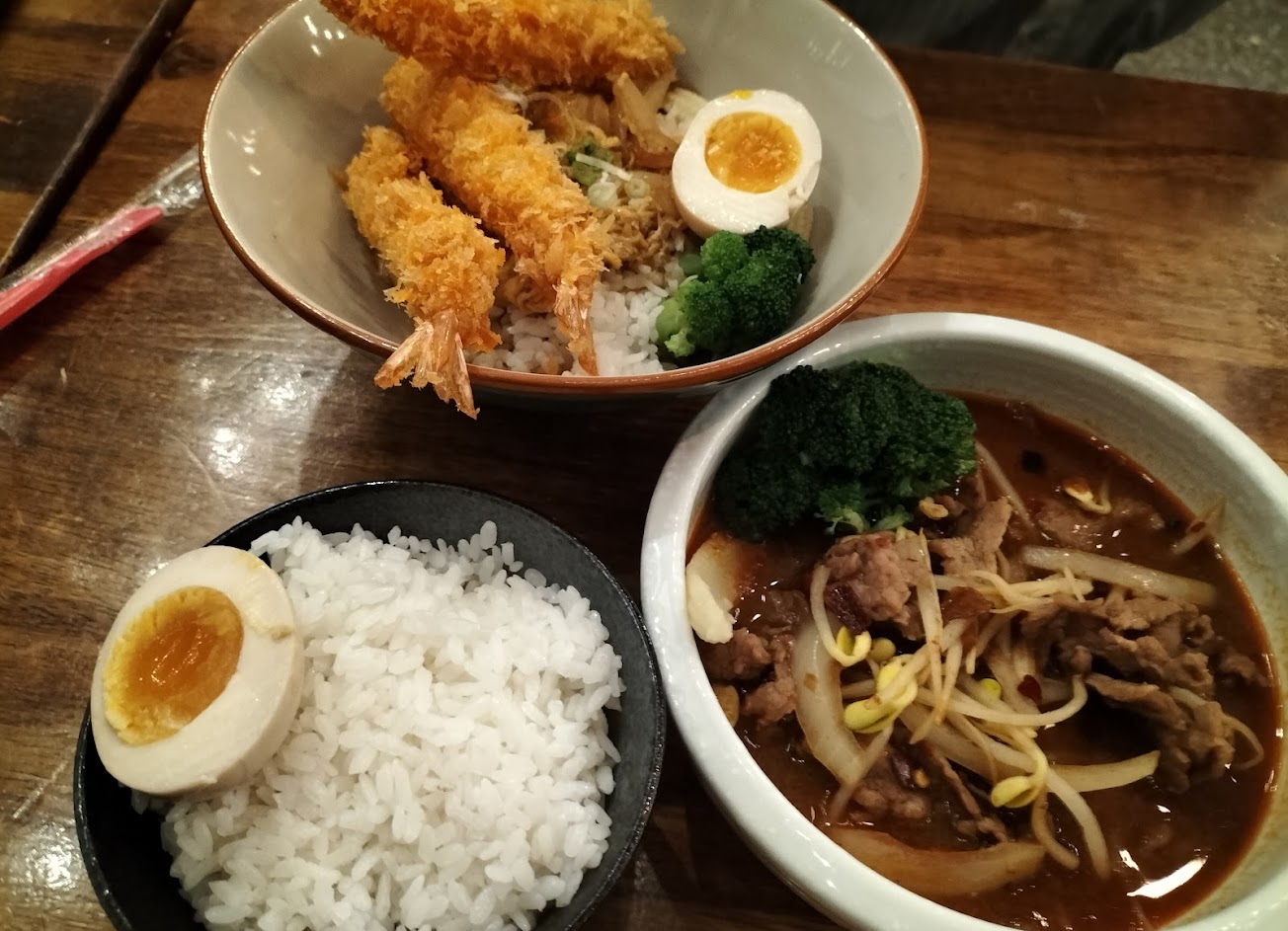 麻辣水煮牛好吃,牛丼好吃,炙燒豬五花好吃,椒麻舒肥雞好吃,豬排丼好吃,綠咖喱好吃。