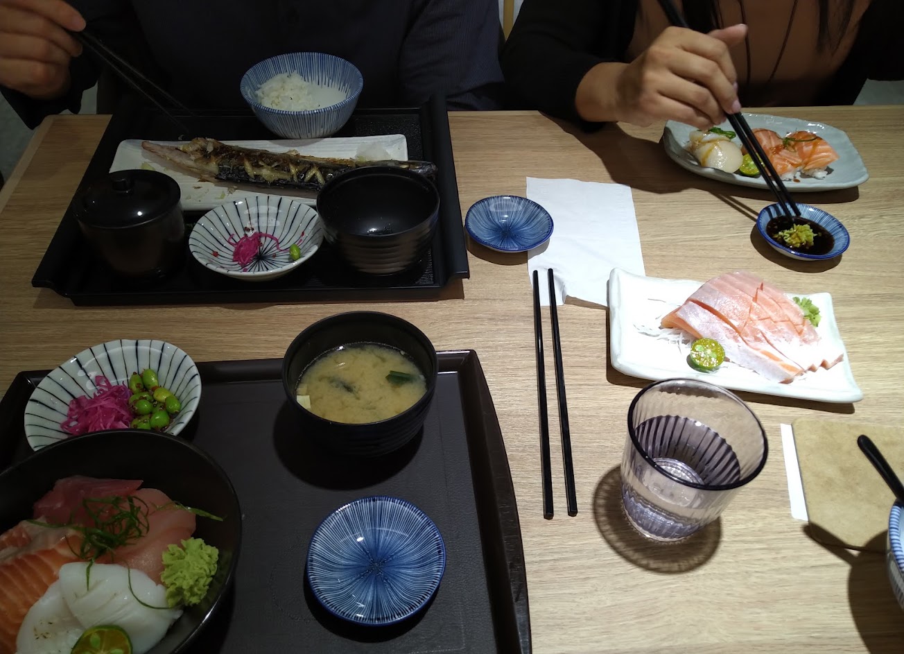 用餐環境寬敞、明亮、舒適,服務人員態度親切、用心,已經贏得顧客一半的讚許了! 餐點以日式定食、壽司為主軸,鯖魚、鮭魚、雪花牛肉…定食;握壽司、手捲、烤鮭魚鰭、烤鮭魚肚、刺身…等等單品,種類繁多。 主要是食材的鮮度夠,烹調、燒烤的手法上乘,讓人食指大動,胃口大開。價格是依食材的市價做為定價的基準,以目前人民所得,應列為中等消費。 各人的感覺:高貴不貴,值得品嚐!