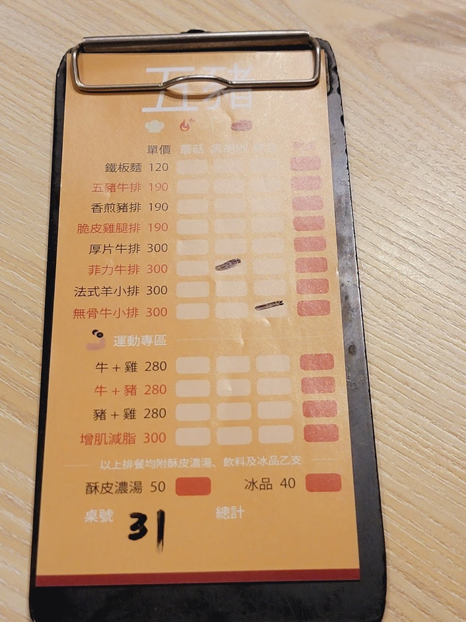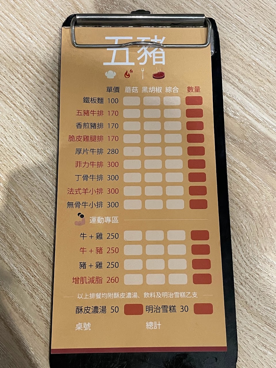 開在士林慈誠宮這個最擁擠的路口旁,五豬牛排也算是士林夜市裡面最熱門的一家牛排店,也同時因著排餐價格算是平價、點排餐也附贈一隻雪糕的服務而造成客潮在門口絡繹不絕,需要排上不短的時間才得以點餐入座。