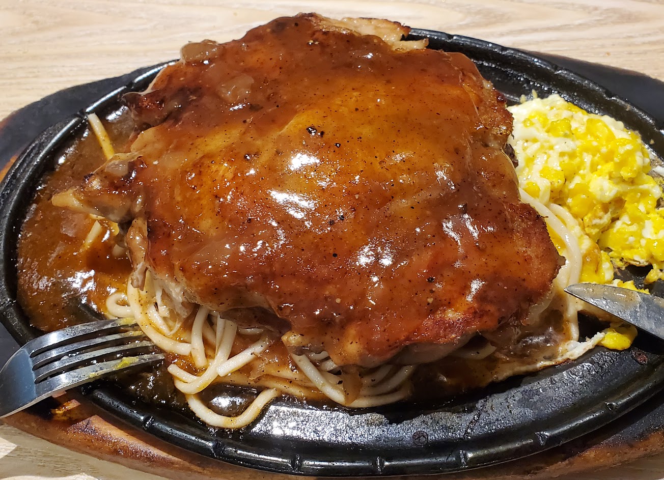 增肌減脂很棒,因為每次吃牛排的鐵板麵我都只會吃一點點就不吃了,增肌減脂沒有麵只有切塊的牛肉塊跟兩顆蛋還有一點點很好吃的洋蔥,整個超讚,以後都要點增肌減脂,而且牛肉切塊煎很juicy