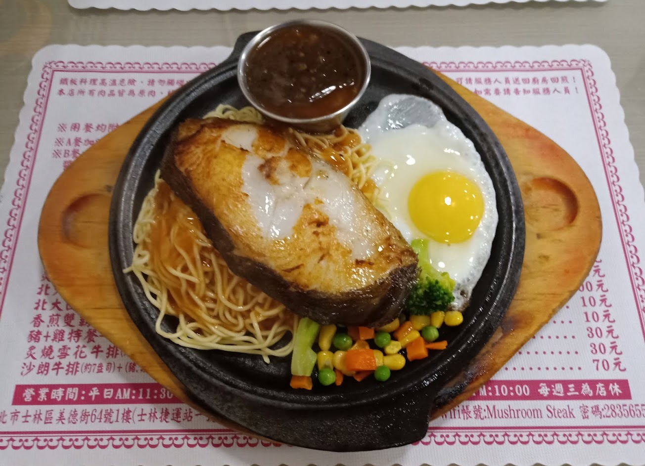 位在交通熱鬧的士林捷運站前假日市集旁,附近有多家的同性質的牛排店可供選擇。店內的排餐價位約兩百元起跳,採單點的方式,麵包跟濃湯需另外加30元加點。鮭魚排餐的鮭魚肉大塊、無腥味,比起有些台式排餐的鮭魚排來說算是不錯的選擇。停車的話可以選擇停在捷運站後方的停車場。