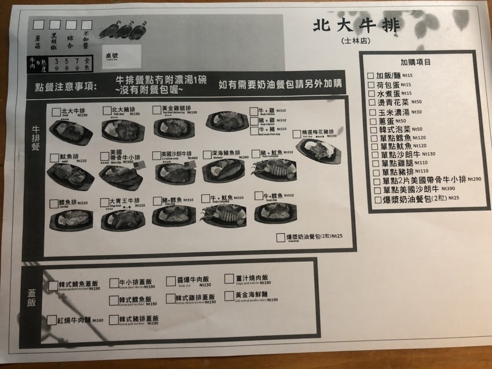 2024最新在地推薦餐廳的菜單_北大牛排的菜單、圖片