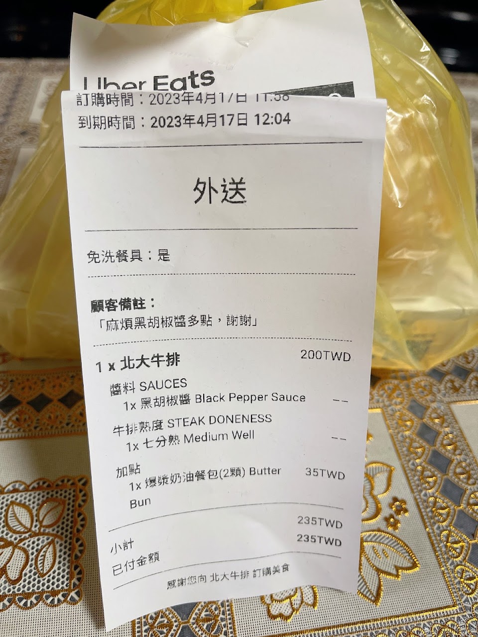外送加點了餐包 所以說我的餐包呢ಥ_ಥ