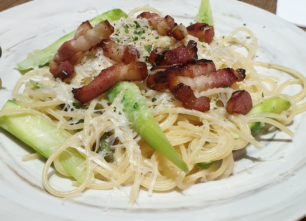 氣氛優,義大利麵精緻美味,牛排香嫩可口;餐盤還是義大利進口的(有蝸牛的螺旋感),漂亮別緻!