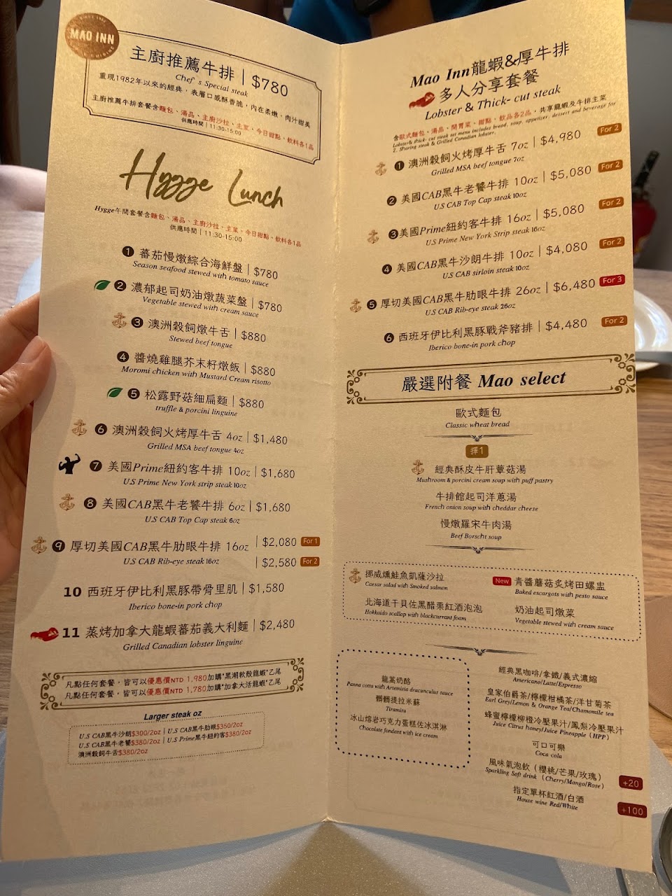 我在錨隱廚吃龍蝦,抓牛排。 服務 內用 餐點類型 午餐 平均每人消費金額 $600-800