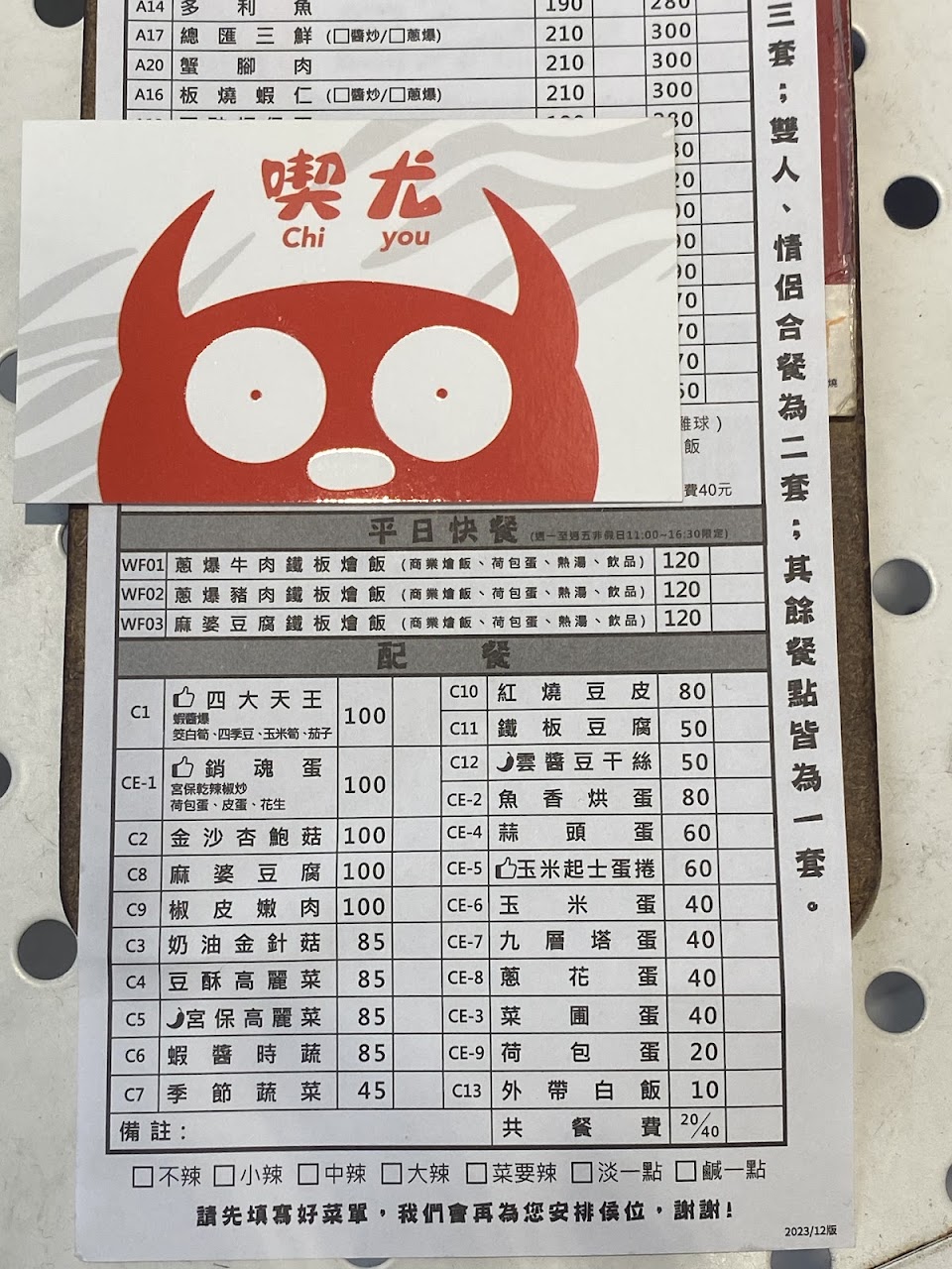 2024最新在地推薦餐廳的菜單_喫尤平價鐵板燒 – 士林店的菜單、圖片