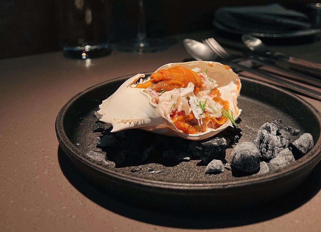 時間:2022/01/21(3.9) 有吧台坐味先吃熱食,最後會引導到一般座位吃小甜點和茶。 無菜單,價格4xxx,服務還可。 蔬菜配蛋黃醬,好吃清脆,醬濃 鱈魚白子,個人不愛這個部位,但配上很濃的起士勉強可以 螃蟹燉飯,量不多,但蟹味濃郁,海膽清爽 炸魚,醬很加分,還有像松子的搭配增加口感變化 烤豬:皮脆,醬清爽,搭配起來讓豬不膩 牛排,肉質還可,搭配松露醬很涮嘴 加點薩索雞,肉質很棒,非常嫩,推薦點 甜點普通 整體來說不會不飽,只是這個價位有點高,會期待更多驚喜