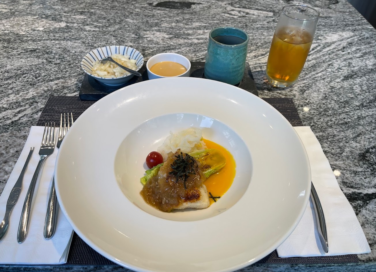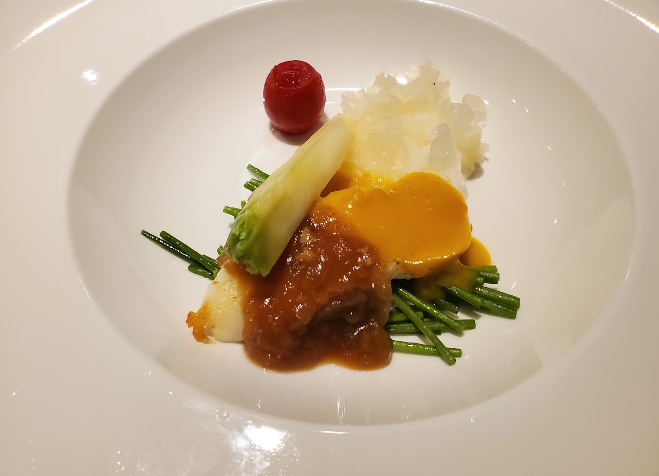 食材新鮮豐富,濃湯有意猶味盡的感覺!生煎干貝配烏魚子令人念念不忘!還有鮑魚,龍蝦,及主餐牛肉,比較可惜的是牛肉份量有點少,附餐飲品很一般,整體出餐速度偏快!