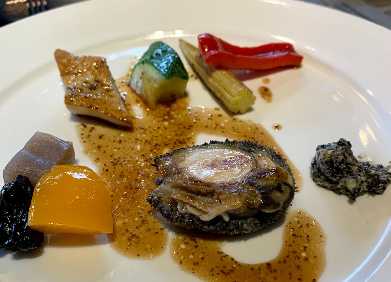 食材非常新鮮,雖然一份套餐要價不斐,但光是前菜就有非常新鮮的干貝、鮑魚、鮮魚、龍蝦可以享用,師傅的手藝更是完全不會浪費這些食材。還沒見到主菜,光是吃前菜就已經能有六七分飽,非常划算。