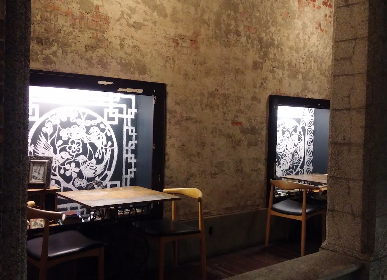 是老房子改建,很有老式上海風,服務很好,還幫忙抬娃娃車,但吃方面就不道地,沒特別說,不辣,和我之前去泰國的比,香料不夠味。