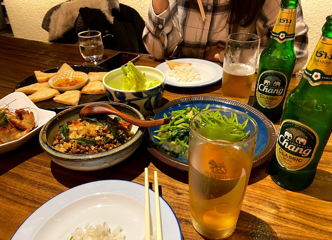 在士林夜市裡的一間泰式餐廳,外觀看起來是老屋子,裡面則是稍微工業風的裝潢。餐點很不錯用料都很實在,椒麻雞給的花生量沒在手軟的吃起來很過癮;沙爹雞肉口味也讓人驚艷,醬的味道不會過於濃烈,搭配醃過的雞肉非常好吃;炒河粉擠上旁邊附的檸檬也非常美味。整體來說是一間會再回訪的店家,食物美味服務人員也很親切、速度很快,硬要說的唯一小缺點是樓梯有點高,如有小孩或老人要注意。