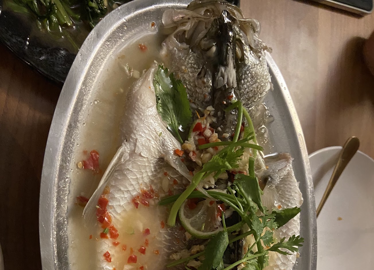 吃了月亮蝦餅、泰式檸檬魚、蝦醬空心菜、沙爹雞、蜂蜜香茅茶。