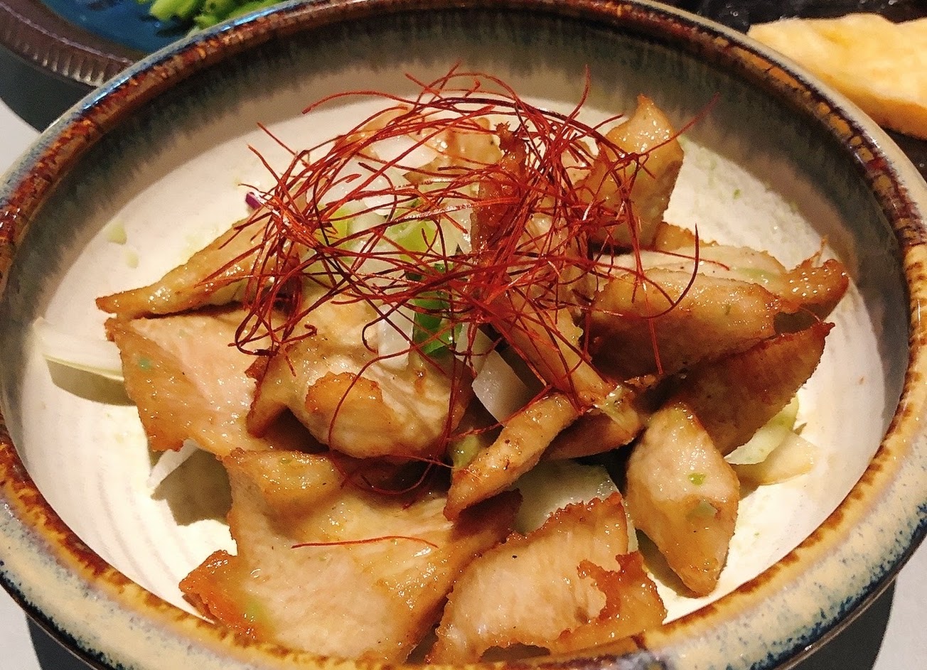 ?酥脆的椒麻雞,一整支雞大腿,上面還鋪滿了花生粒,增加了香氣跟層次感?
