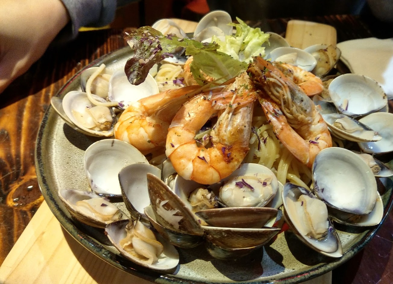 義大利麵量很多,熱度也很夠,除了青醬口味很膩,其他都好吃、海鮮蝦子蛤蜊都很大。