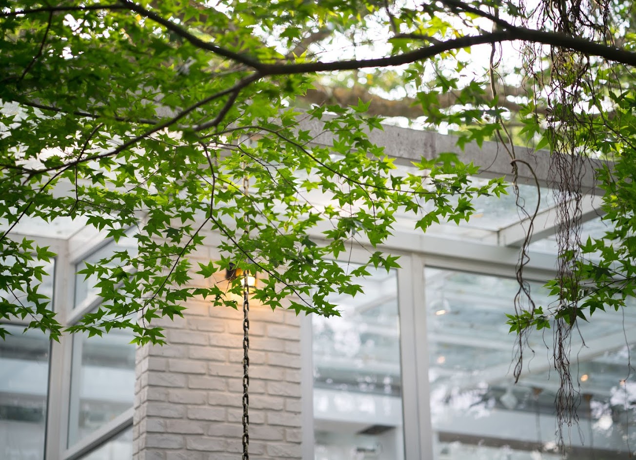 這家店隱藏在陽明山上的幽然小徑裡, 整個外觀以及內部的擺設十分的居家風格, 白色為基底的裝潢充滿著手作風格, 大片的玻璃天花板可以 可以看到陽光從樹葉間灑落下來 ,不管是白天感受午茶時刻的悠閒,或者是晚間來享受燭光晚餐的浪漫, 都是值得推薦的地方。