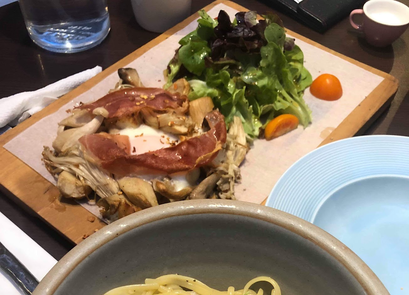 點了三明治、鮭魚、奶油榛果雞肉麵。