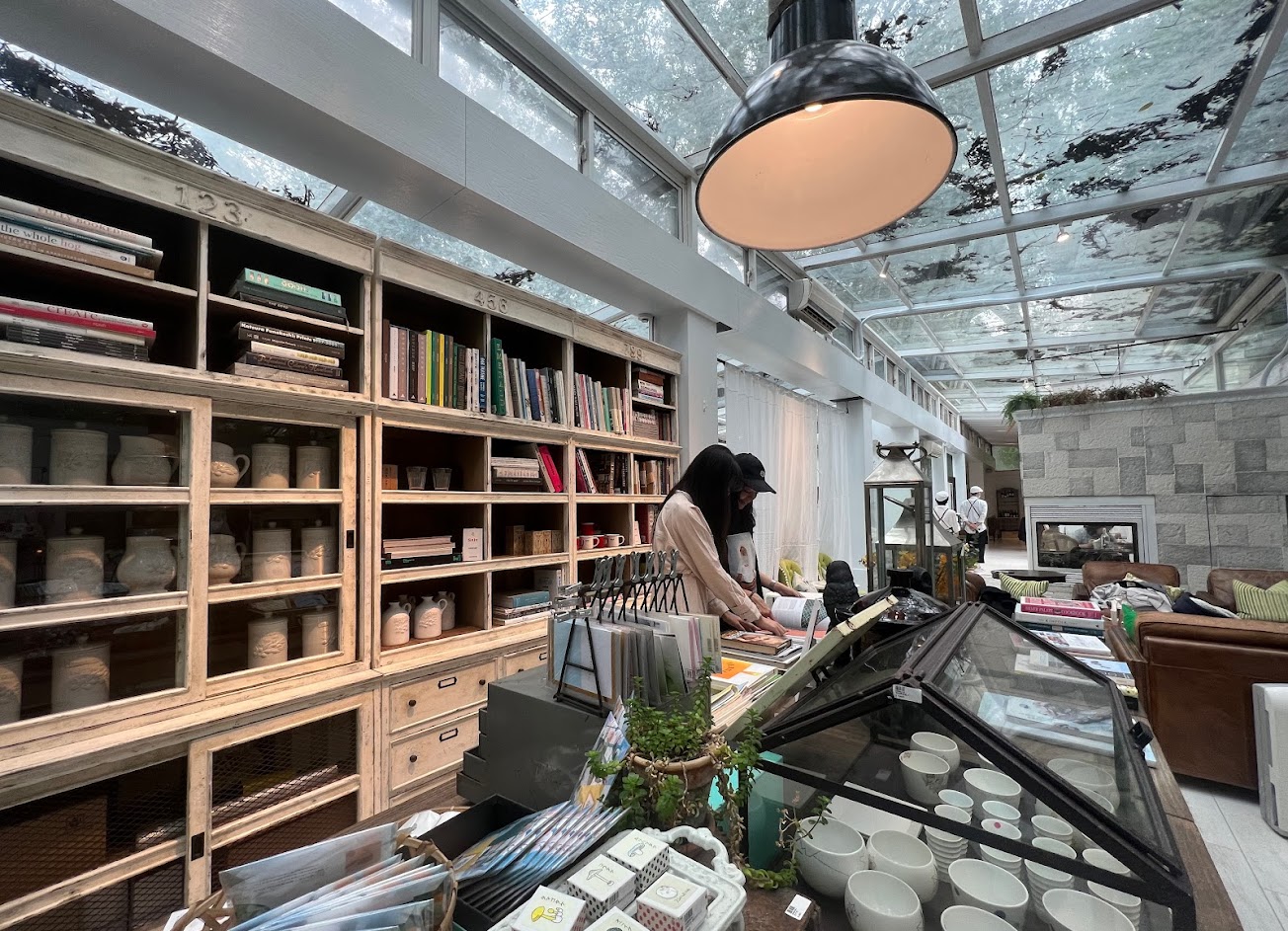拾階而上,玻璃屋讓陽光、綠意自然灑落室內,悠閒的空間佈置,讓人享受輕鬆的午後時光。