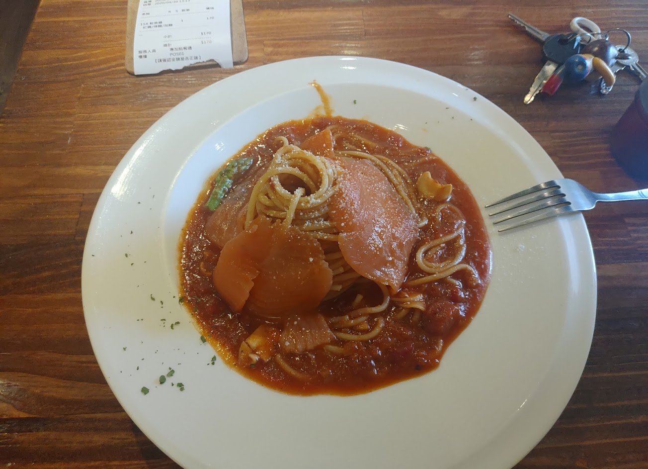我覺得可以算中上的義大利麵,可惜沒有清油炒,但味道是不錯的 可能當天太餓,加麵的麵量吃完還有一點餓,女生可能剛好 紅茶免費可續杯