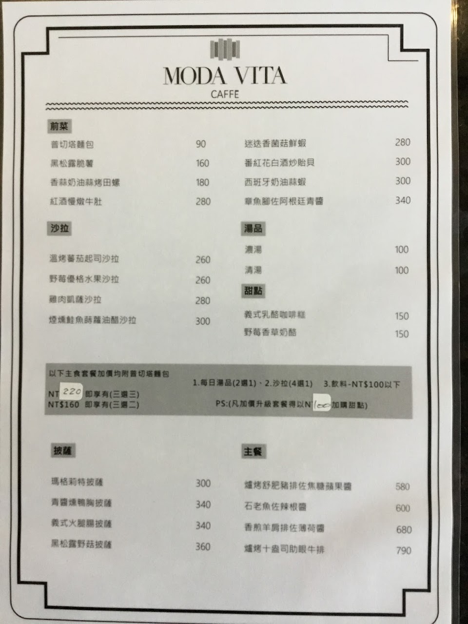 2024最新在地推薦餐廳的菜單_Moda Vita Caffè 義式料理的菜單、圖片