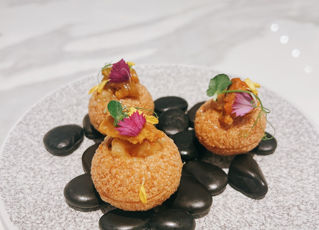 ?海膽我的最愛❤️!名字取得很讓人期待!「海膽干貝月光寶盒」一出場就讓人食慾大開,外皮酥脆干貝餡也夠誠意,就是入口感覺溫度不太夠,趣味口感加分。