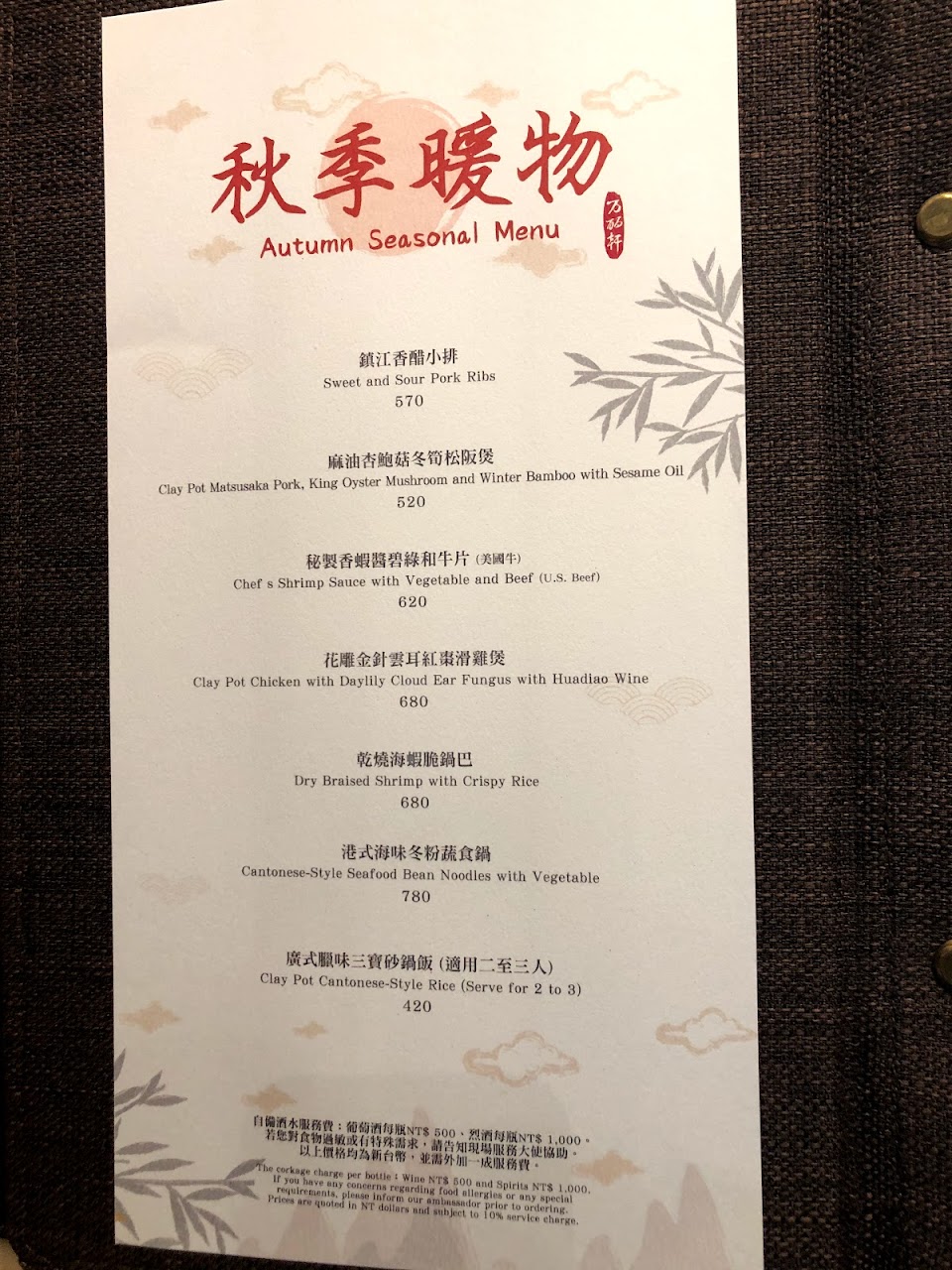 第一次到士林萬麗酒店的萬麗軒中餐廳用餐,其實讓人10分驚艷的,菜色有一點像是粵菜又有一點江浙菜的感覺,從網路上看到的菜色好像一直不同今天點的菜單菜色又跟之前完全不一樣,今天點了玉山酒香炙排骨,干鍋鮑魚腐竹魚腩,熗辣腰果雞丁都很好吃。