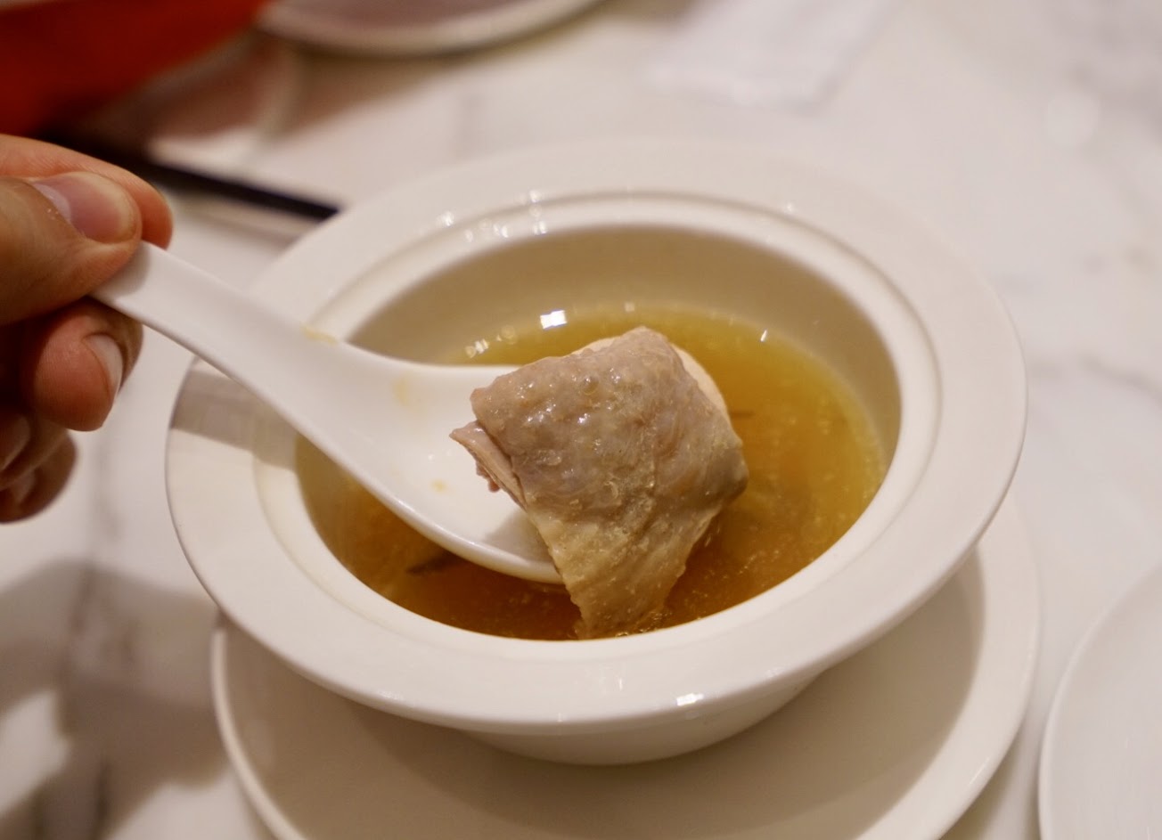 偏偏烤鴨挺柴的,然後還把片鴨剩下的鴨肉拿去煮湯,