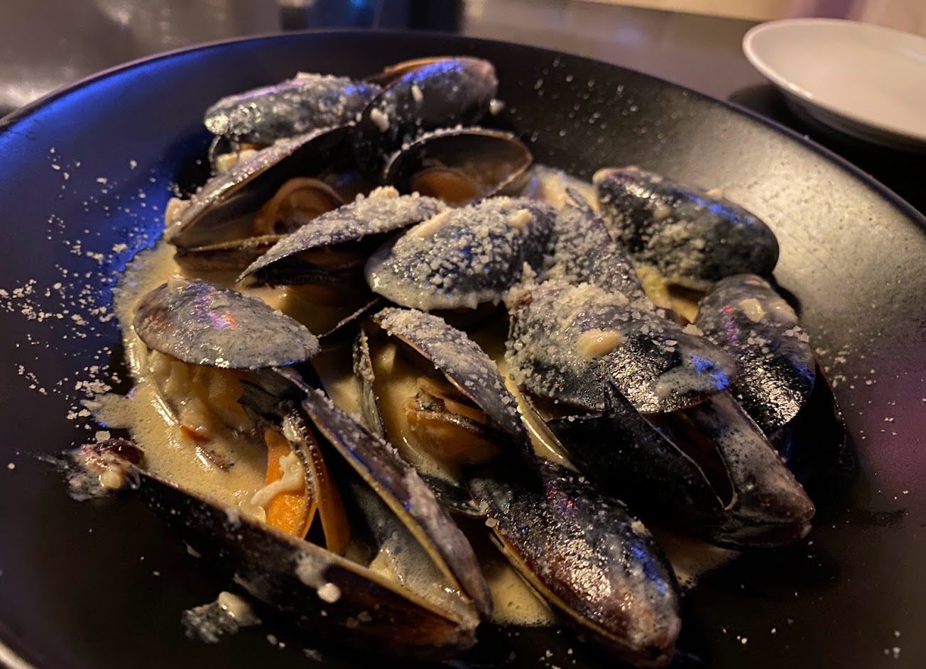 燻鮭魚起士(220元)大片燻鮭魚搭配麵包,並灑上起司粉跟生菜,味道不錯,但麵包如果烤過會更好;藍紋乳酪白酒淡菜(360元)重口味的美味,超推!燻鮭魚的麵包拿來沾此醬非常搭;蒜香海鮮細扁麵(380元)有蝦子、干貝、蛤蜊等,海鮮很新鮮;麻辣牛肉細扁麵(420元)花椒味濃厚,搭配牛肉薄片,味道不錯。服務親切,環境乾淨,收一成服務費。五星好評送shot一杯。
